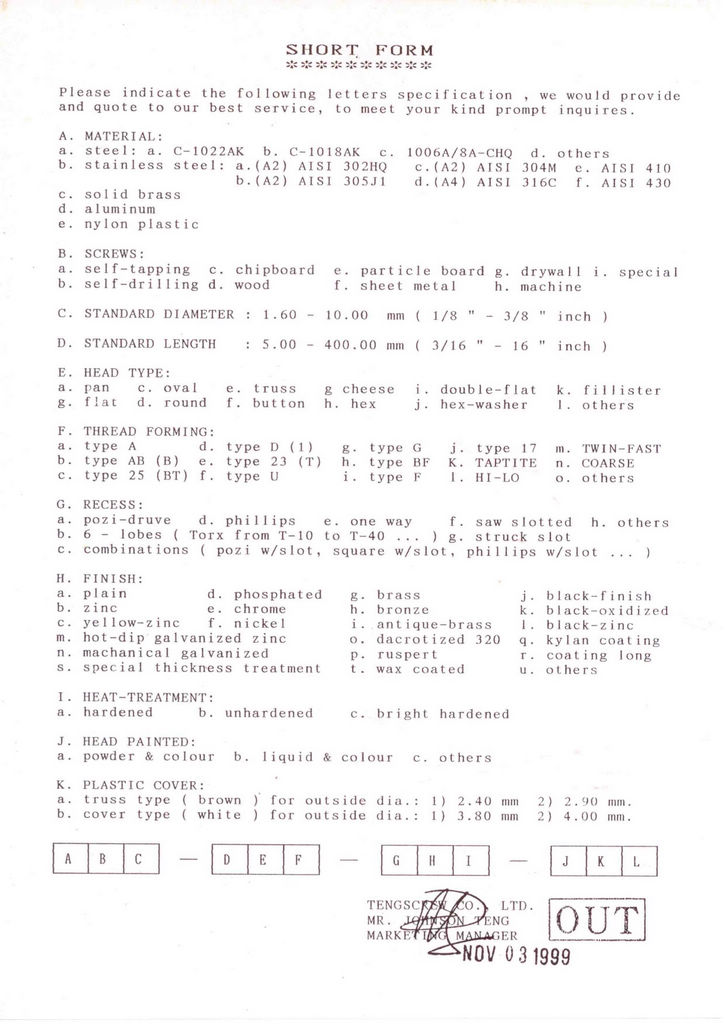 | Screws & Nuts For ODM, OEM By Agent Area Wanted